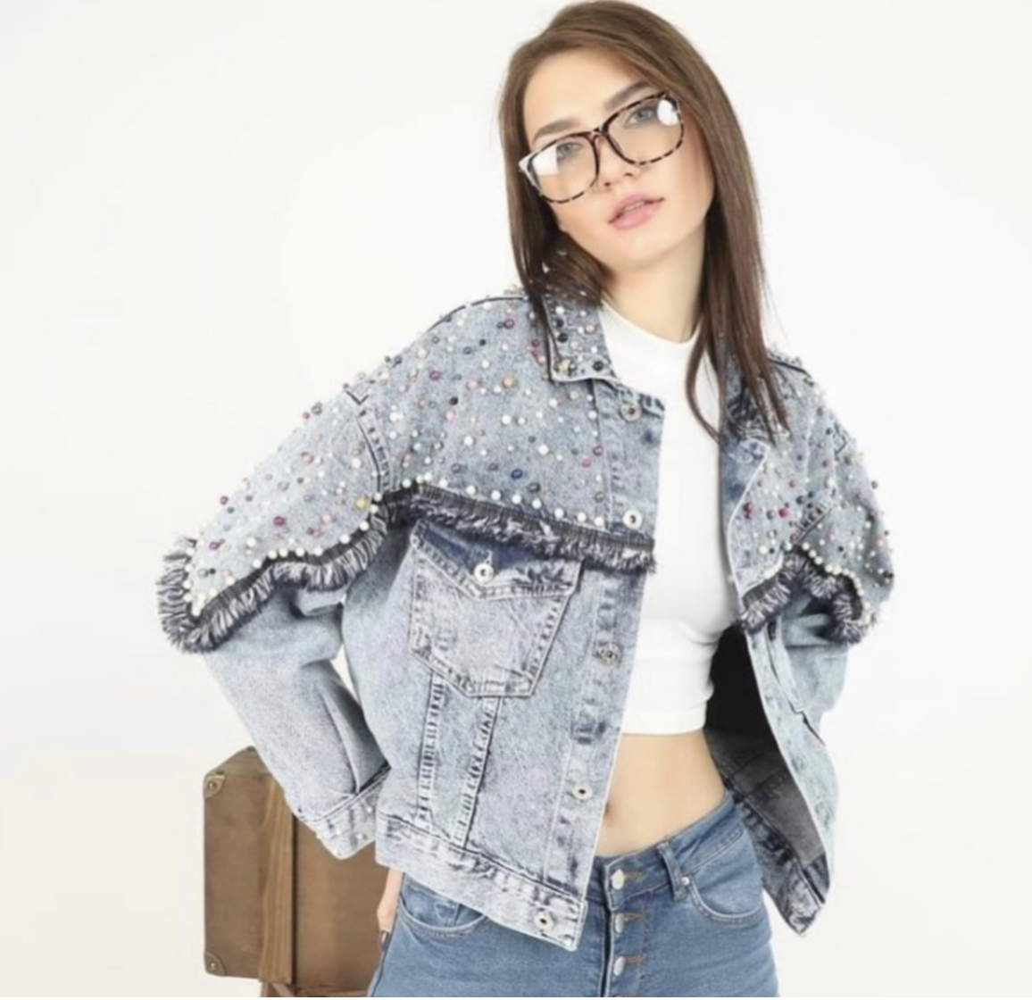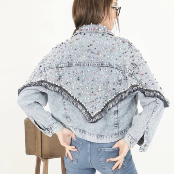 Jeansjacke mit Perlen