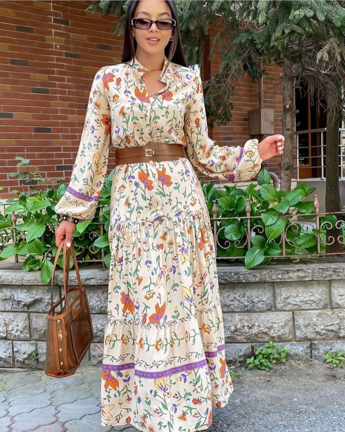 Maxikleid mit Blumenmuster und Gürtel